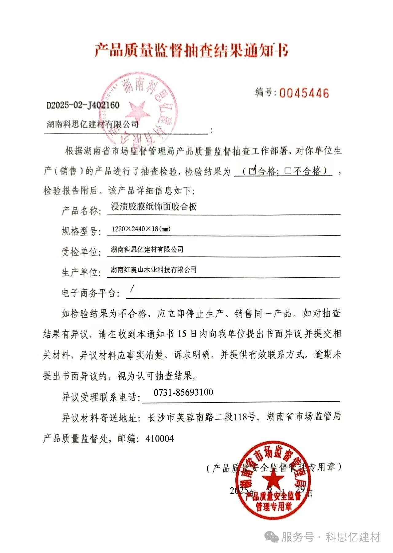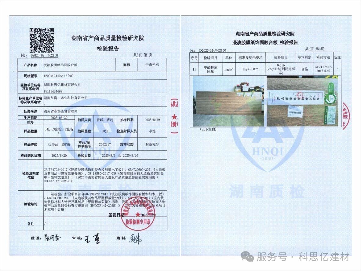 近日,湖南省市场监督管理局依据《中华人民共和国产品质量法》《产品质量监督抽查管理暂行办法》等规定,组织开展了2025年第三季度重点工业产品质量省级监督抽查。在这场严格的质量“大考”中,湖南科思亿建材有限公司旗下品牌——帝森元福板材系列产品,凭借过硬的品质实力,交出了一份令人满意的答卷。